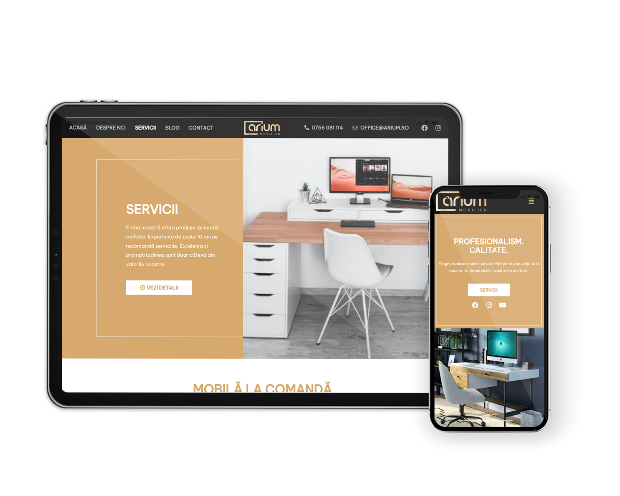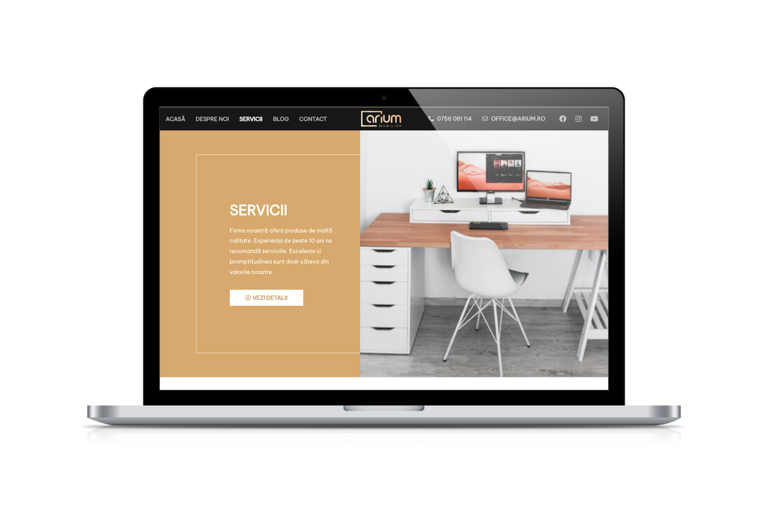 Site-ul are un design care se potriveste cu identitatea si imaginea firmei de fabricare mobila personalizata.
