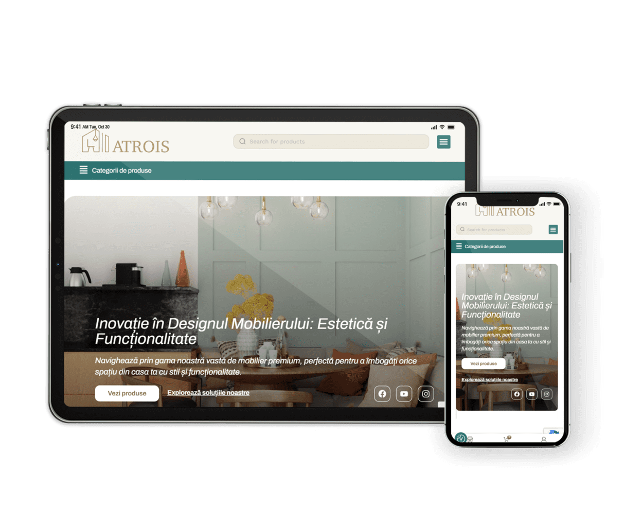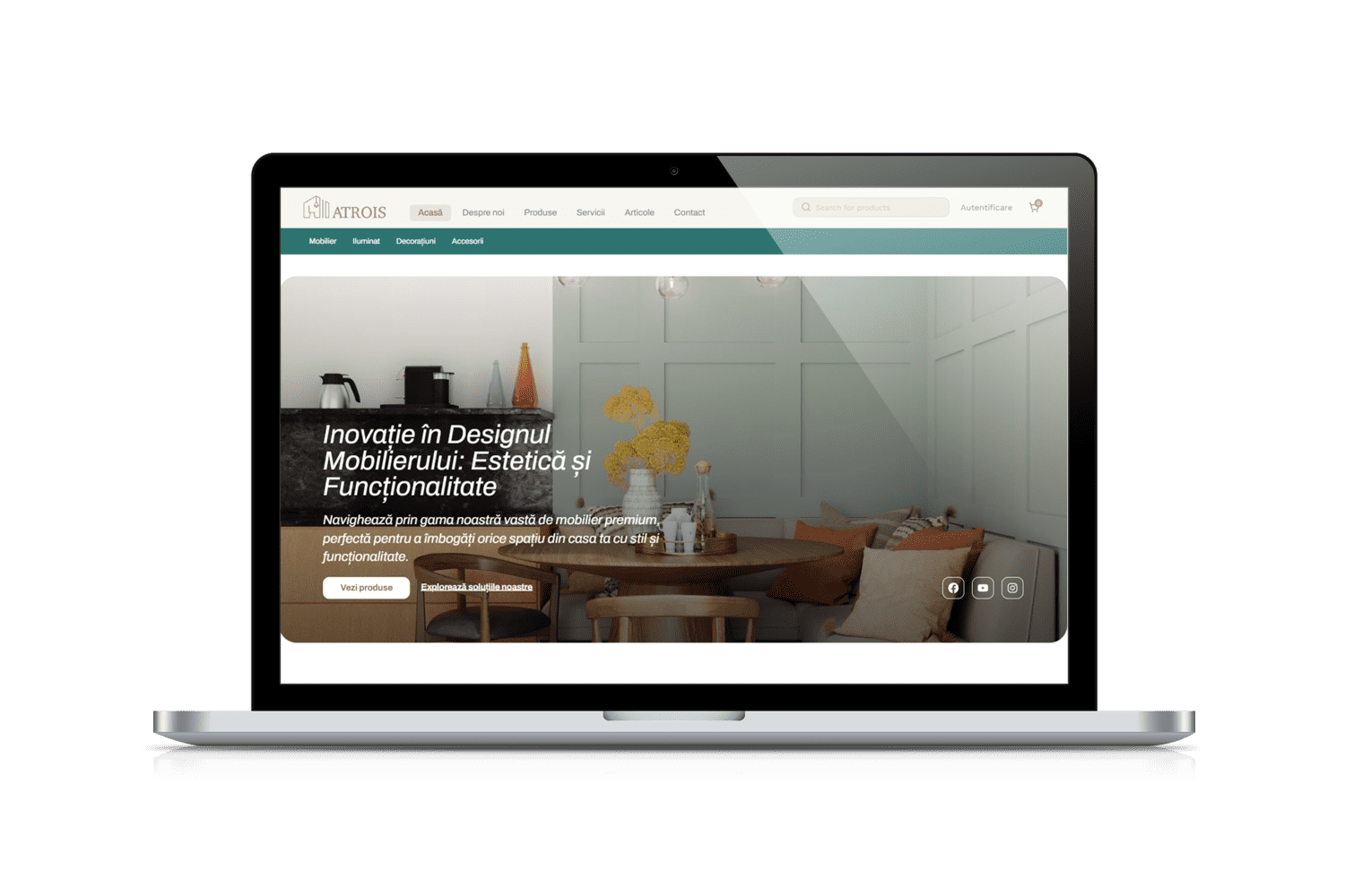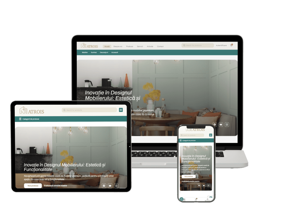 Navigarea pe site-ul Atrois este simplă și intuitivă. Meniul principal este clar structurat, permițând utilizatorilor să găsească rapid informațiile și produsele dorite. Am implementat și un sistem de căutare eficient, care ajută la o navigare fluidă și fără efort.