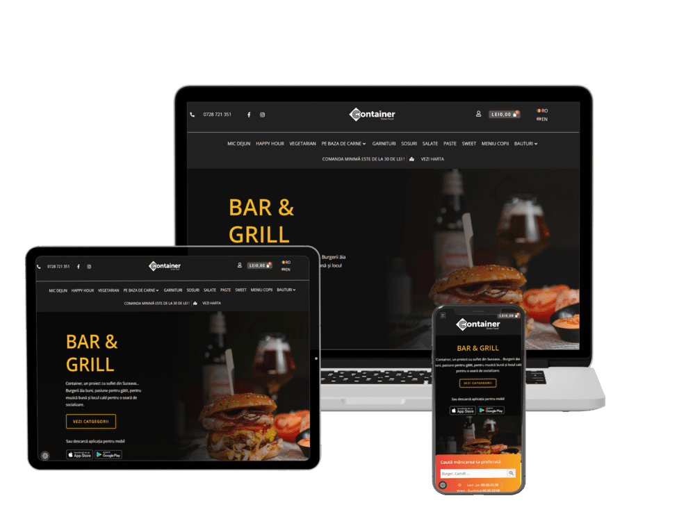 Am facut structuri de navigare clare, cu secțiuni distincte pentru meniuri, oferte speciale, contact și detalii despre restaurant. S-a utilizat un modul pentru comenzi și integrarea cu o platformă de plată securizată.