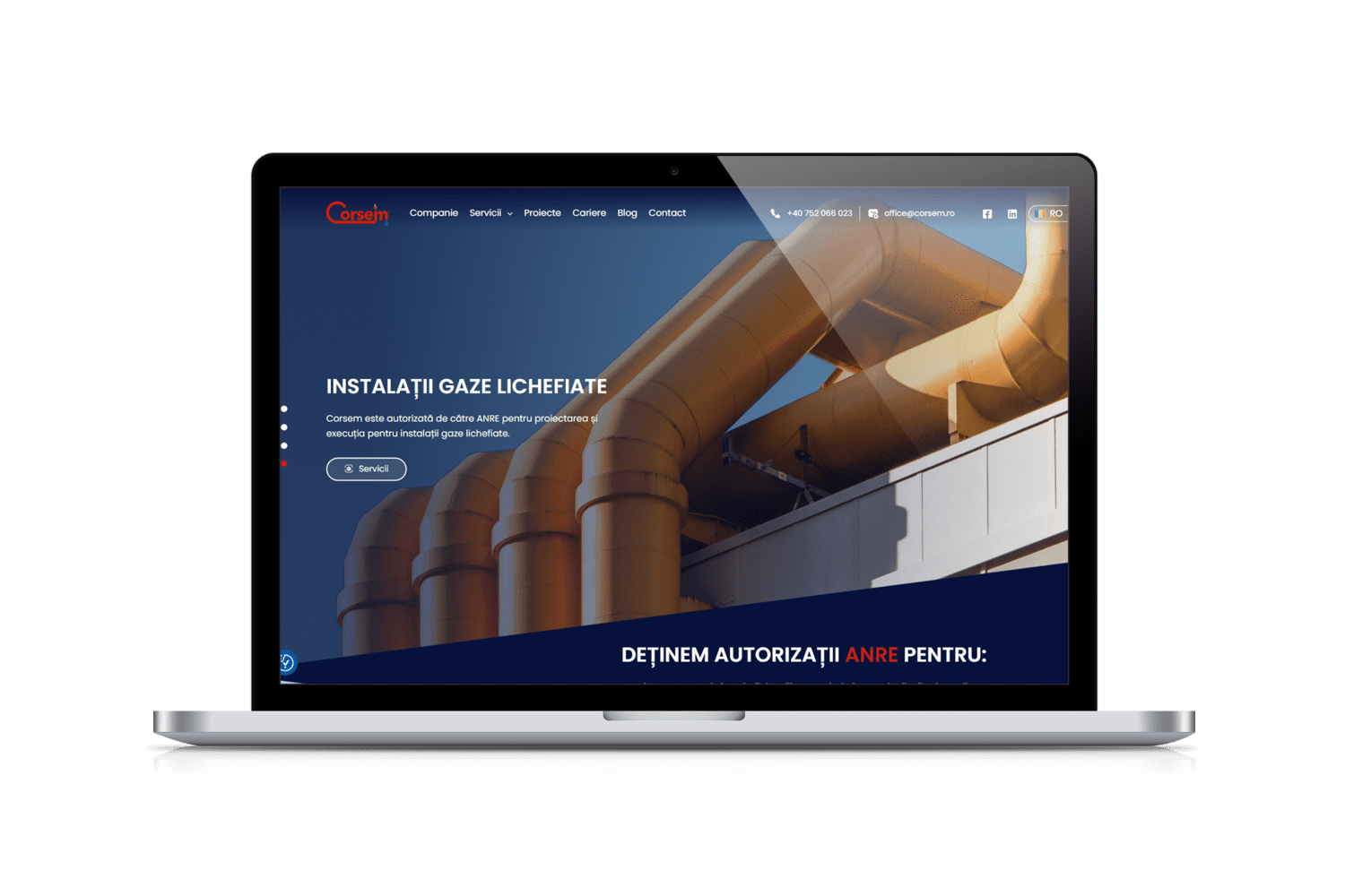 Corsem este un site profesionist, realizat în Wordpress după un design custom unde se prezintă serviciile oferite.